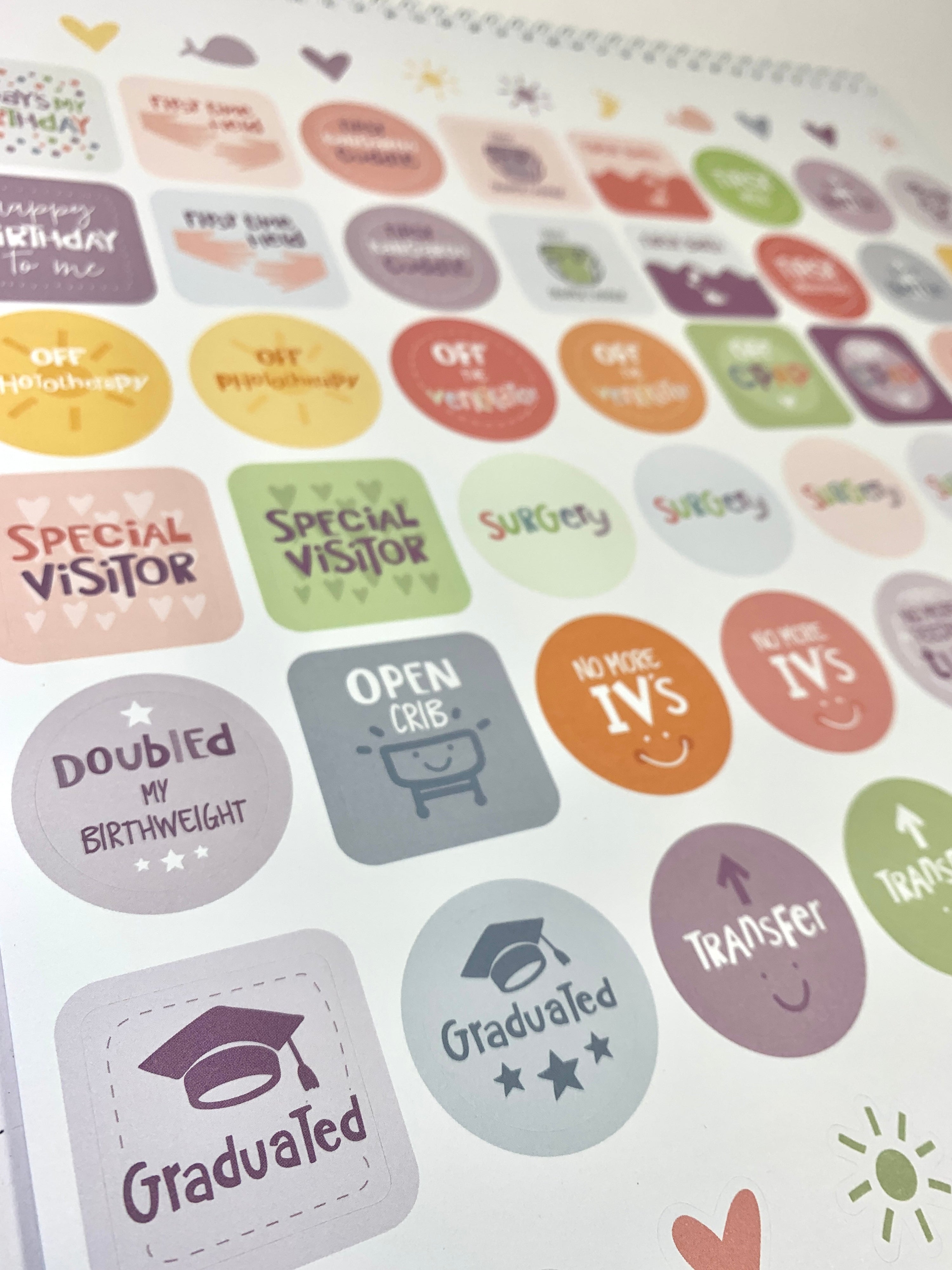 - the over 200 NICU-specific stickers that make capturing milestones easy and fun
